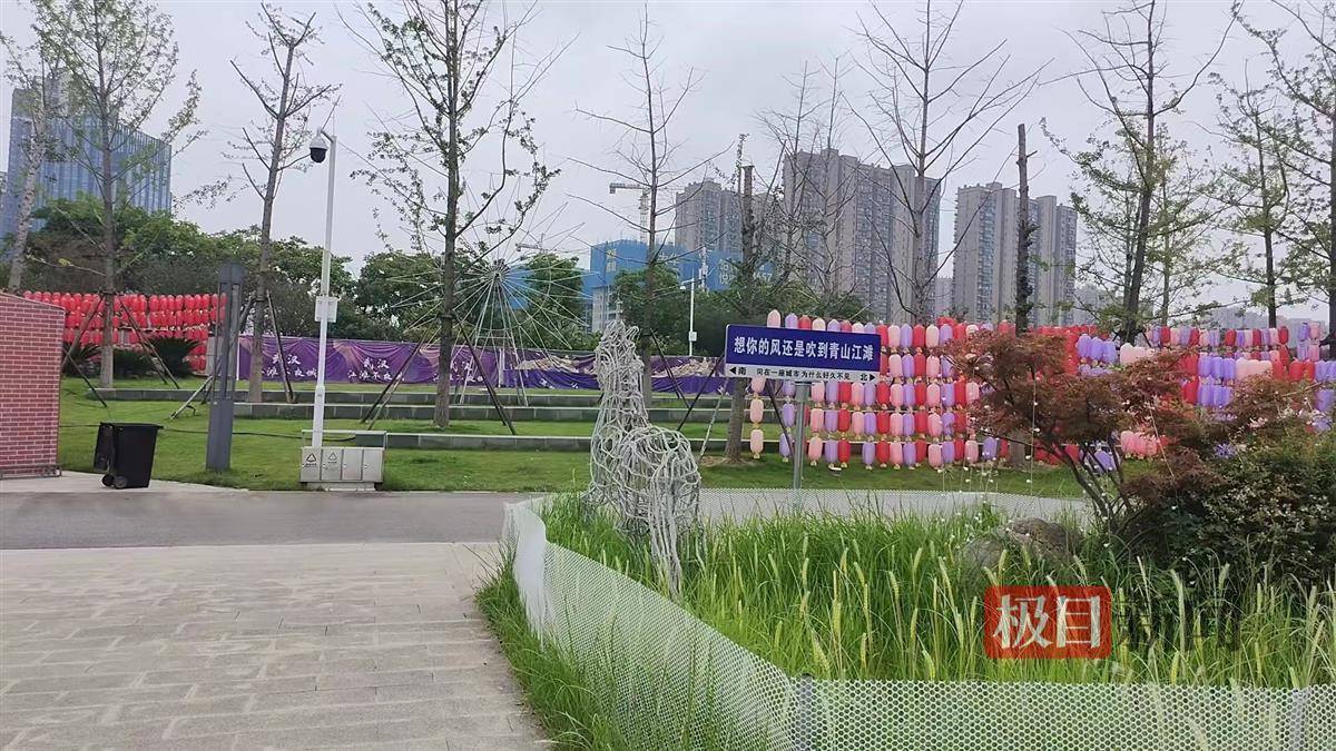 7月19日上午,极目新闻记者来到位于武汉青山江滩建二时尚广场附近的“江滩不夜城”。该园区有两个入口和一个出口,均无人值守,偶尔有几位游览江滩的市民路过,便进去闲逛一番。