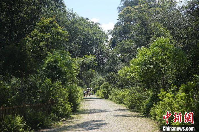图为游客漫步景迈山千年万亩古茶园。 黄兴鸿 摄