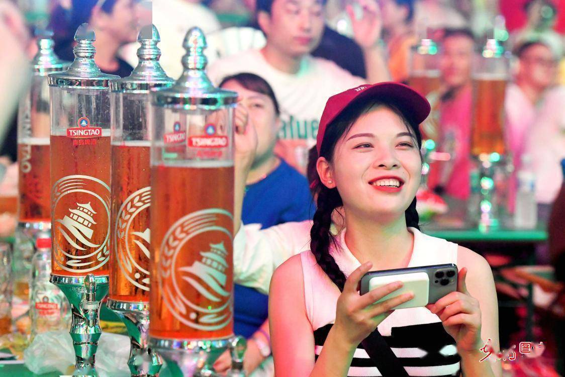 7月16日是青岛国际啤酒节的首个周日,据统计当天有数万市民和游客进入啤酒城游玩,进一步激活夜晚经济发展。主题灯塔矩阵、浪漫焰火秀、裸眼3D秀、大型梦幻建筑实体光影秀为游客带来集视觉、听觉双重享受于一体的啤酒狂欢盛宴,丰富的色彩与造型让不少市民驻足观赏、拍照打卡。