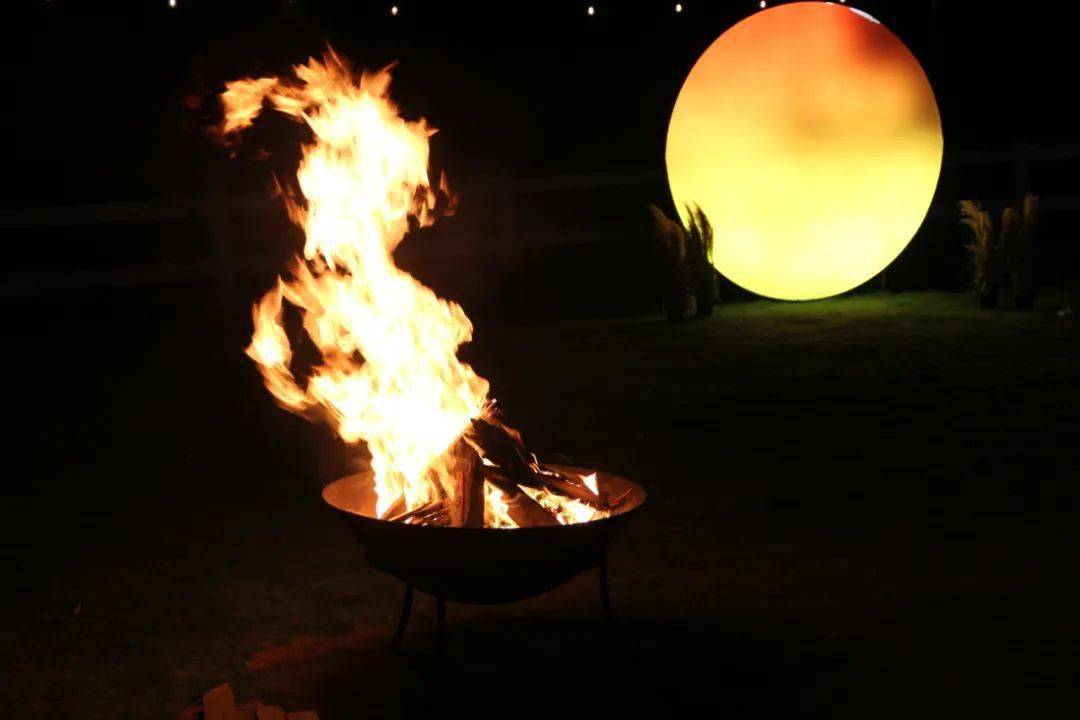 尽管山脚下的人们热得都到了空调房内,这里却燃起了熊熊烈火。月光下,山顶篝火晚会正式开始!