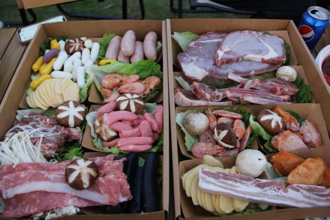 山顶基地为大家配备的 烤肉套餐等美味佳肴。