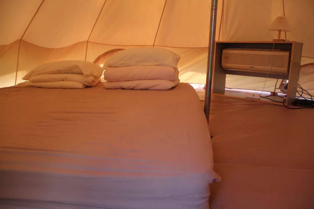 在营地住宿区,小编数了一下,这里有16个蒙古包帐篷,都搭在木台上,里面有 床垫、席梦思、空调、一次性用品等。