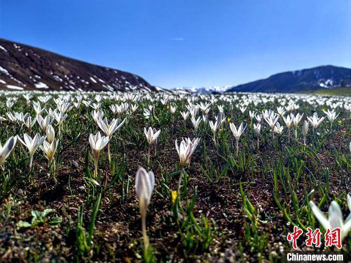 七十九团将军谷景区大片大片的顶冰花开满了山谷,将整个山谷装点得春意盎然。 黎雯 摄