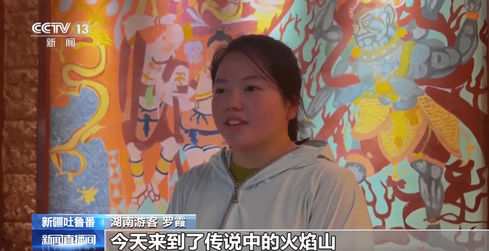 湖南游客 罗霞:今天来到了传说中的火焰山,体验到了我人生中的最高温,金箍棒上的温度是80℃,非常高。