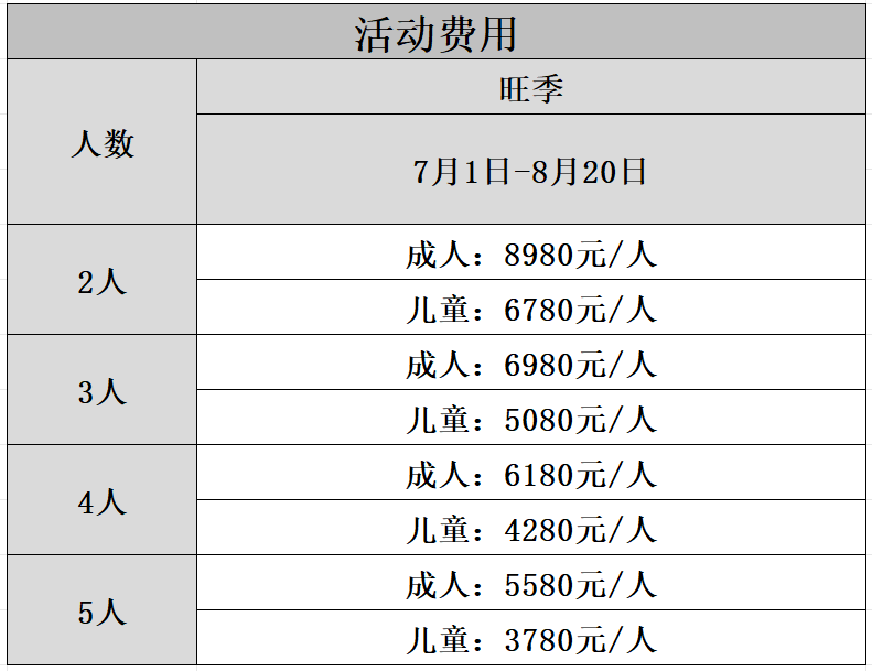 2、单房差:淡季600元/人,旺季1300元/人