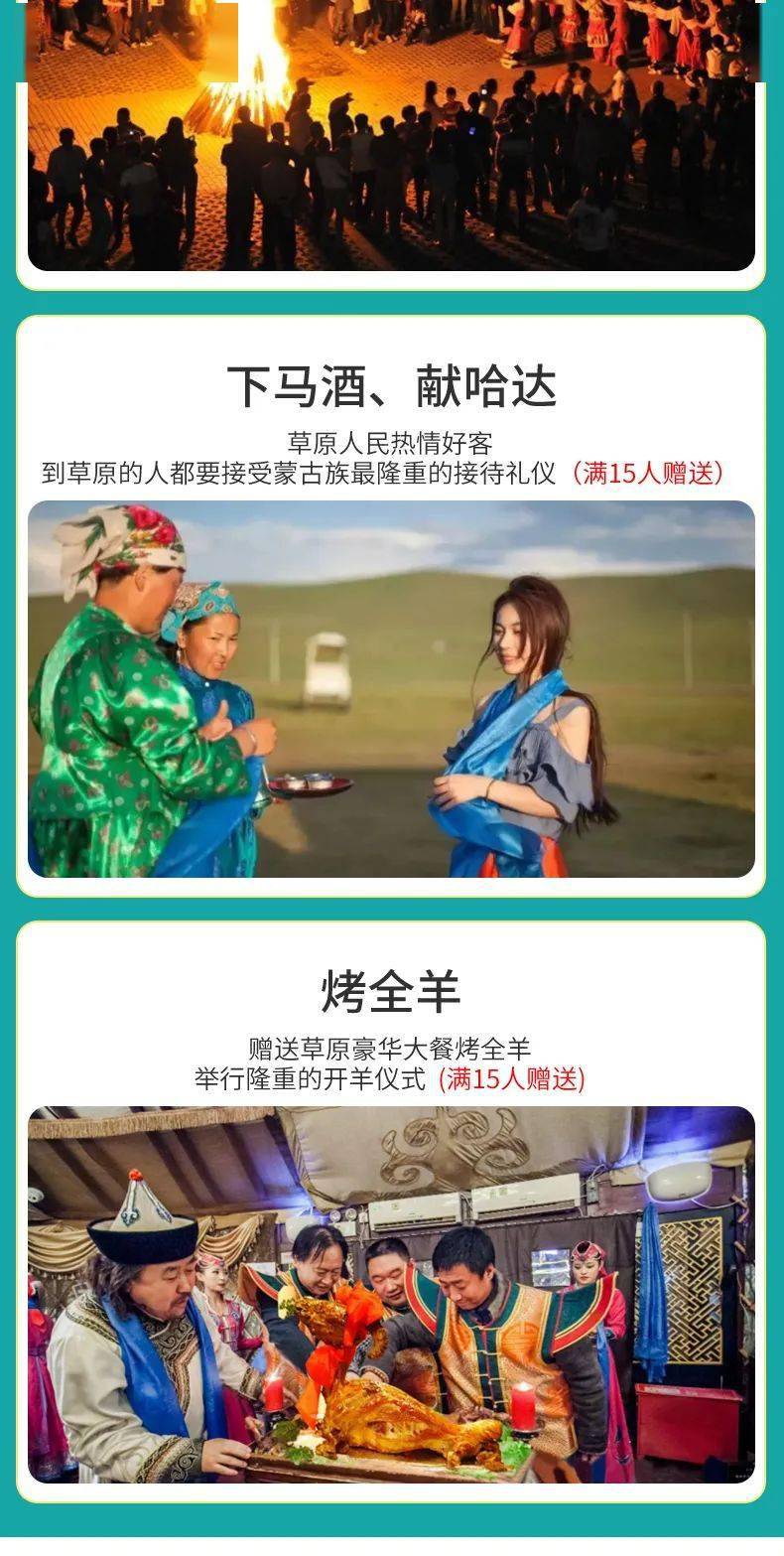 14:00下午我们将前往位于草原深处的【私家牧场】,来到大草原能够真正零距离与原始蒙古族接触,想必是每个人心中的一份期待。在这里我们走进草原深处,充分了解游牧部落民族的习俗及生活状态,这种经历可不是每一个到草原旅行的人都有机会体验到的。我们可以亲手【挤牛奶】【喂小羊】【喝奶茶】【吃奶酪】,穿上【民俗服装】来一张草原深处的打卡照,坐上草原的【网红小火车】奔驰在草原深处。