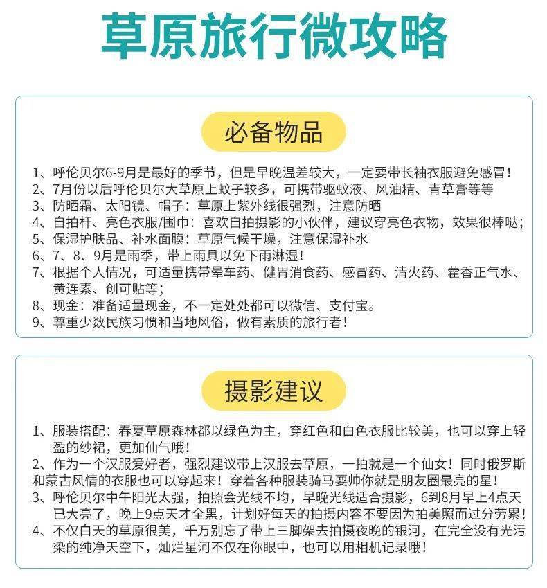 1、到呼伦贝尔的往返大交通自理,提早订机票会便宜很多