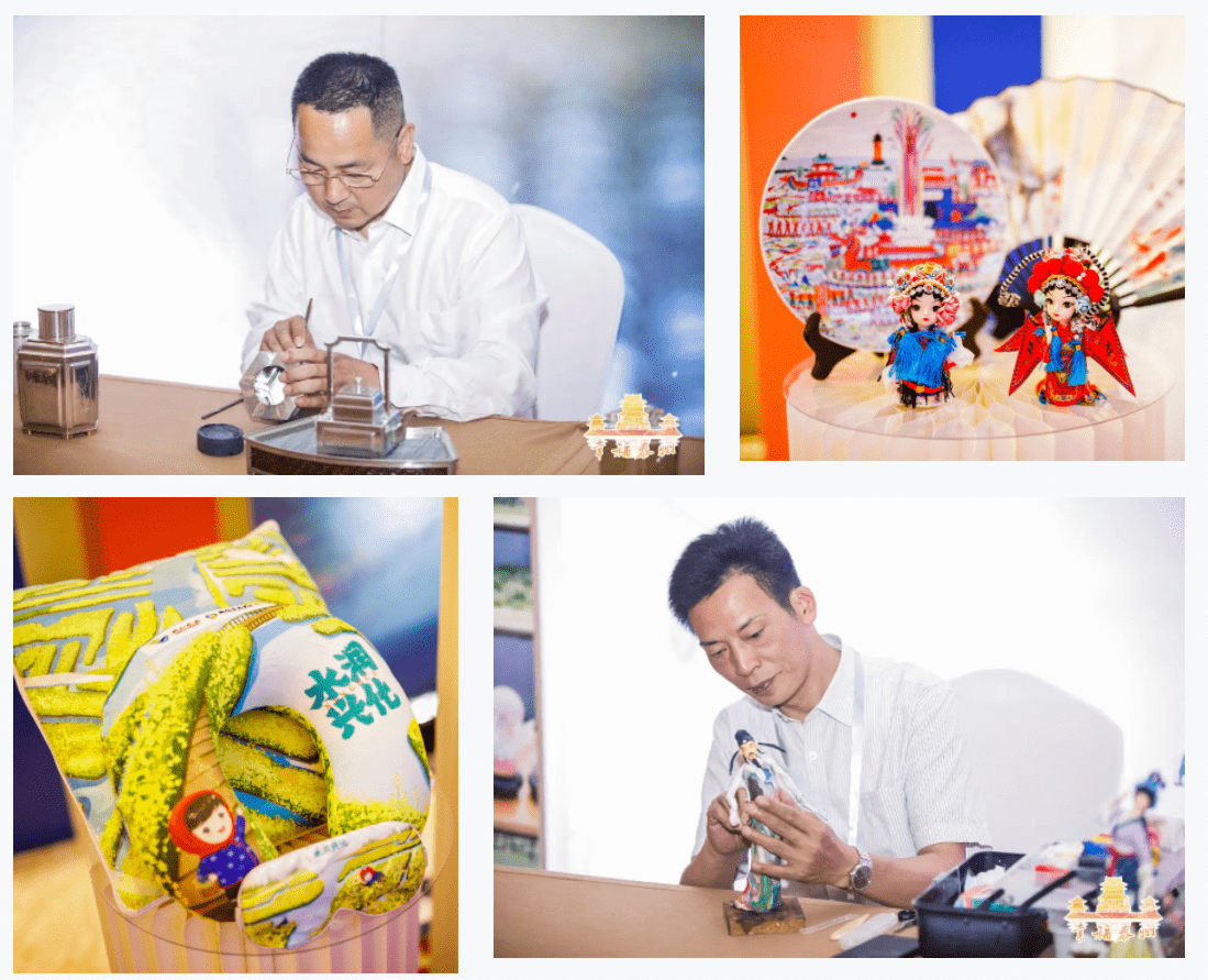 场外展示区以“互动体验+静态展陈”的组合形式展出了泰州各市区特色文旅产品,可爱的京剧玩偶、早茶三宝“烫干丝、蟹黄包、鱼汤面”等文创产品受到热烈好评。