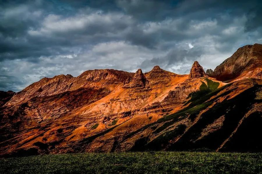 夕阳西下,遥望绵延起伏的山石,沉淀千年的银多丹霞,又沐浴着日落的光晕,柔和地绽放光彩,一抹抹色彩,瑰丽奇谲,宛如从古老文明里生出的绮丽。