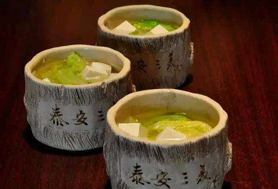 泰山三美是指白菜、豆腐、水。泰山白菜,又叫"城白菜",因为颜色光洁,白中透出淡黄,酷似象牙颜色,又称"象牙白"。体大,心实,清脆。 泰山豆腐,用小石磨推沫,用泰山水成浆,经过多道工序的细心制作,其特点无苦味,无涩味,细嫩如玉似脂。 泰山水,清甜爽口,无杂质,富含对人体有益的多种矿物质。