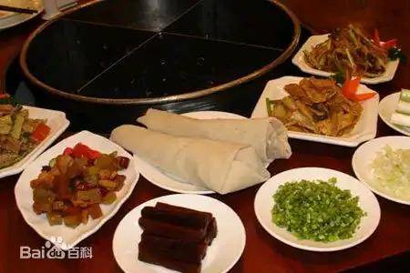潍坊朝天锅是一道传统名菜,源于清代乾隆年间的民间早市。当时潍县赶集的农民吃不上热饭,便有人在集市上架起大铁锅,为路人煮菜热饭,因锅无盖,人们便称之为“朝天锅”。锅内煮着猪下货、肉丸子、豆腐干等。汤沸肉烂,顾客围锅而坐,由掌锅师傅舀上热汤,加点香菜和酱油等,并备有薄面饼,随意自用。然后,根据顾客要求,把肠、肚等切碎,放在饼上,捏上细盐,卷成火筒状,送到顾客手中。