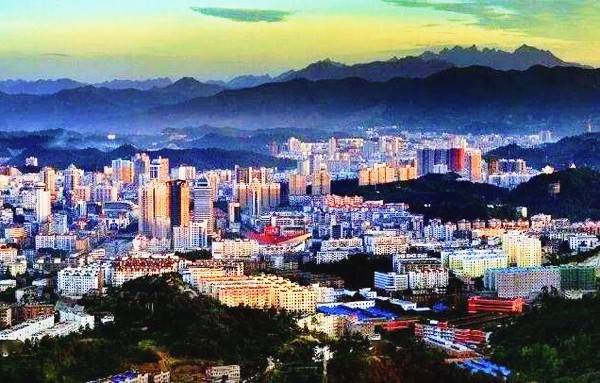 上图:被丛山峻岭包围其间的鄂西北的地级市十堰市城市风情。