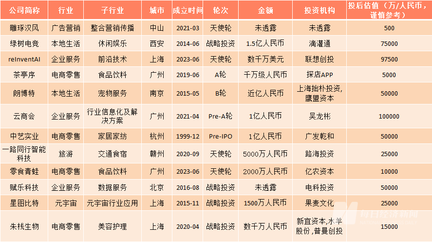 就行业分布来看,电商零售(4起)行业领先,企业服务(3起)和本地生活(2起)行业紧随其后,其余分布于广告营销、旅游和元宇宙行业。