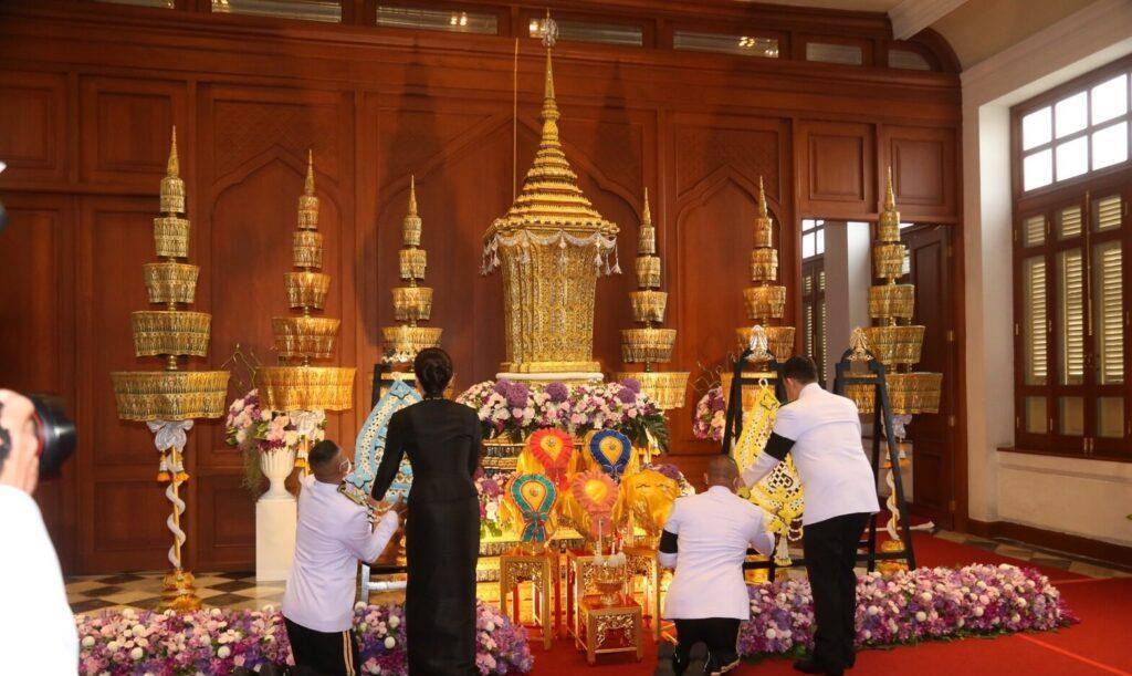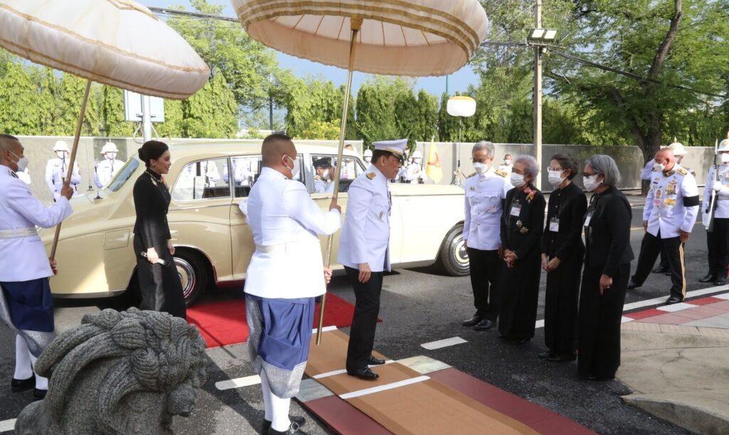 苏提达王后现在也太精致了。她穿着露肩连衣裙去参加皇家音乐会,平时也出席活动。Fancy展示了各种泰国传统服饰。当地时间周五,苏提达陪同泰国国王参加葬礼。苏提达穿着如此精美的丧服。