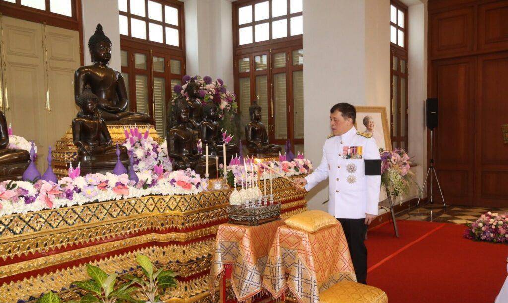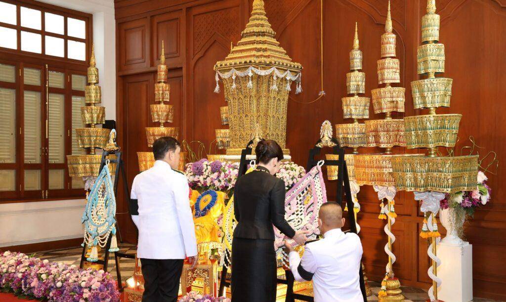 而且即使是参加葬礼这样严肃的活动,苏提达依然穿得十分亮眼。虽然传统的黑色泰服给人一种非常庄重的感觉,但苏提达依然穿着金色的造型,戴着黑色的宝石耳环。美丽就在这里。