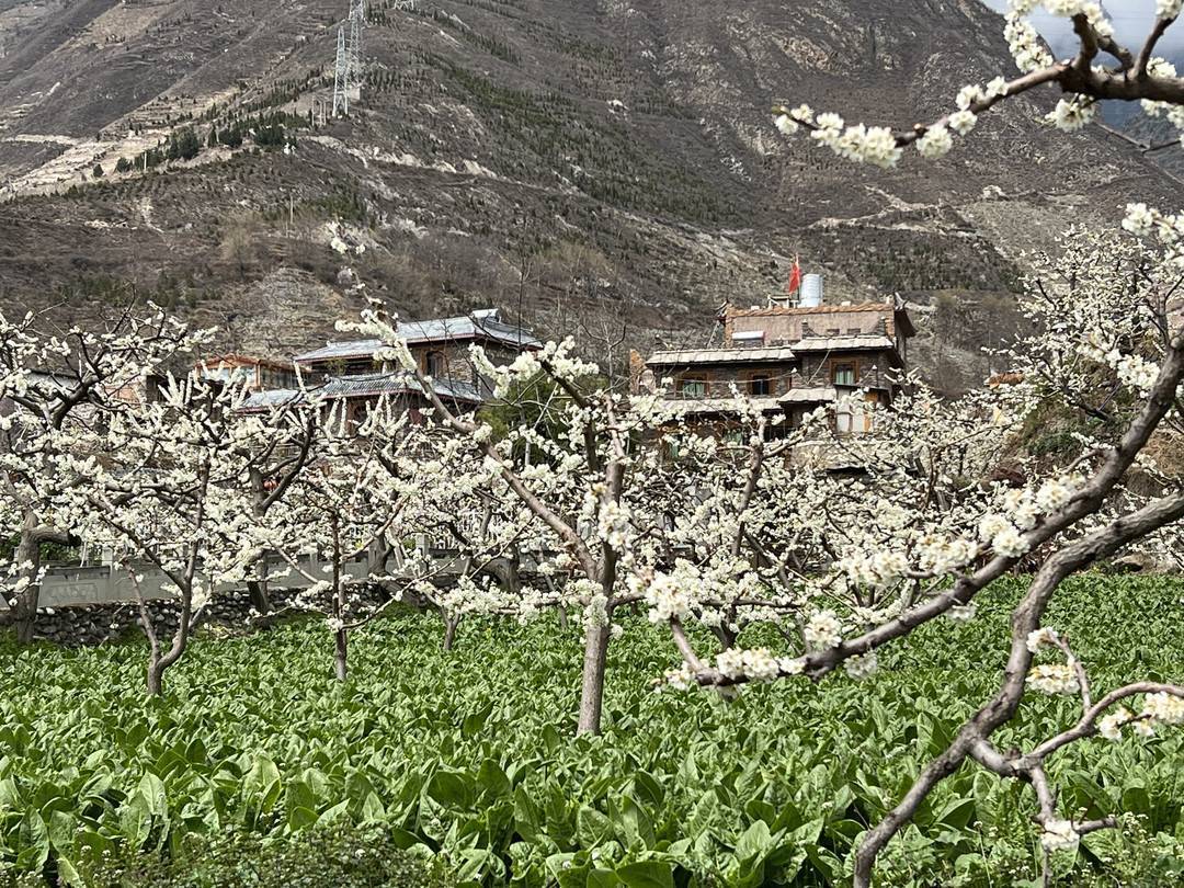 阳春三月,走进四川阿坝州茂县坪头村,李子树正在开花,放眼望去是一片片白色的花海,村里的道路错落有致,古色古香的羌族特色民居依山而建,在远处的雪山映衬下,整个村落优美宁静。