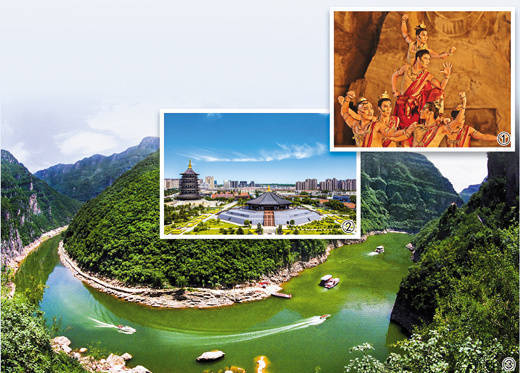 图①:河南卫视舞蹈节目《龙门金刚》 图②:隋唐洛阳城 图③:河南焦作青天河风景名胜区 (河南省文化和旅游厅供图)