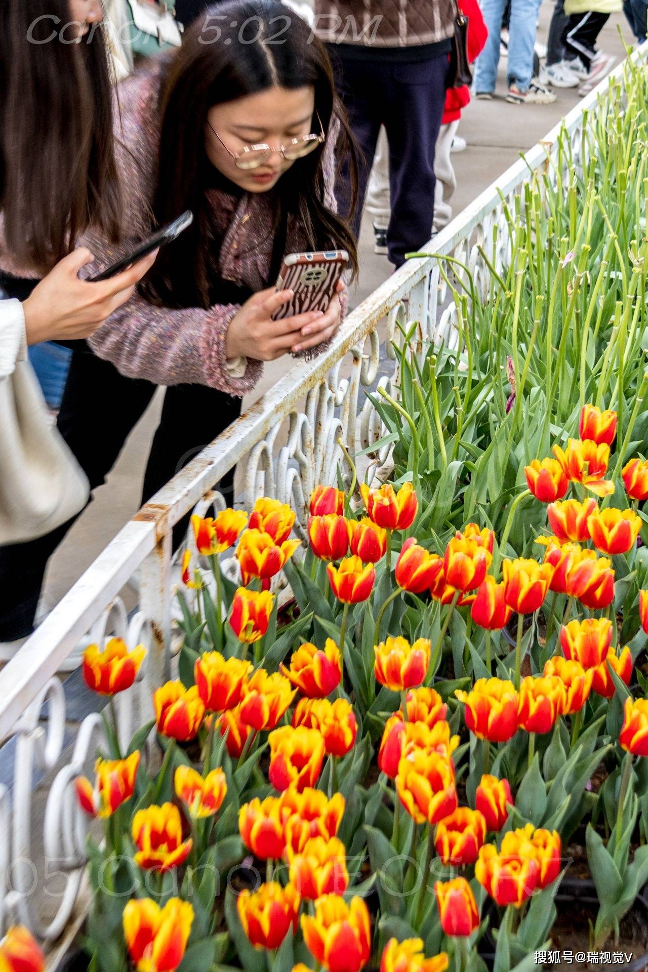 河南省郑州市,人民公园郁金香花展吸引市民前来打卡。