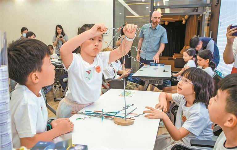 暑期里各种各样的兴趣班,让学生们在漫长的暑假里有了更多的选择。图为兴趣班中的科技益智互动游戏,让小朋友们开心不已。 深圳特区报记者 周红声 摄