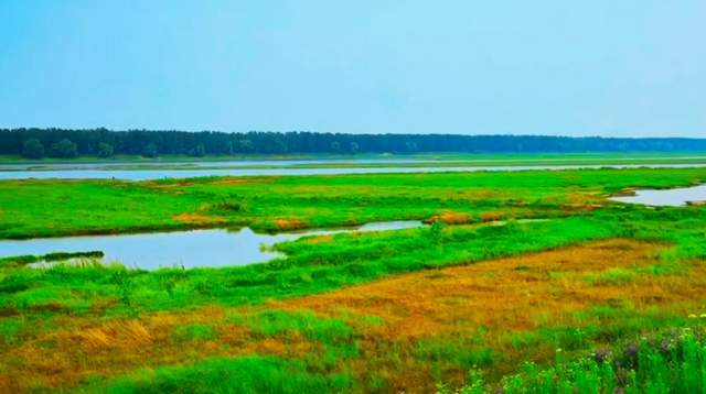 这一段湖堤在北面有盘龙湖和汤仁海湖,湖的面积都不小。不过,骑行的时候,看不到湖面,反而在路面曲折拓展的时候,看得到最近的府河河滩。夏季盛水期,府河河滩涨水明显,水流流速还不低,且水面上有很多野草。野草堆在岸边,与生长的杂草混合在一起,也看不出痕迹来。河滩上,水面时高时低,有被淹没的小树,也有花草,平静的区域里不时看到有微动的涟漪,一定是有鱼类在活动。