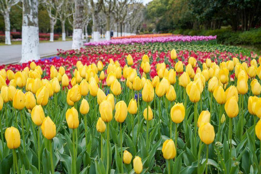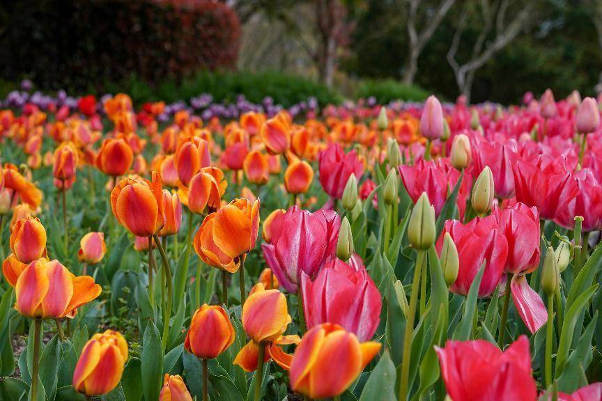 这里的郁金香花展无论是规模还是种类及种植技术都是全国的标杆,自主研发的分层种植技术,很好的延长了郁金香的花期,把美丽成功“留住”,300多万株、500多个品种的郁金香、风信子、洋水仙、银莲花等铺泻在林间小路、玉立在清水湖畔、簇拥在鲜花大道。