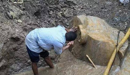 它埋藏在地下水层里,考古学家以为这尊雕像极大也许即是埃及法老拉美西斯二世。