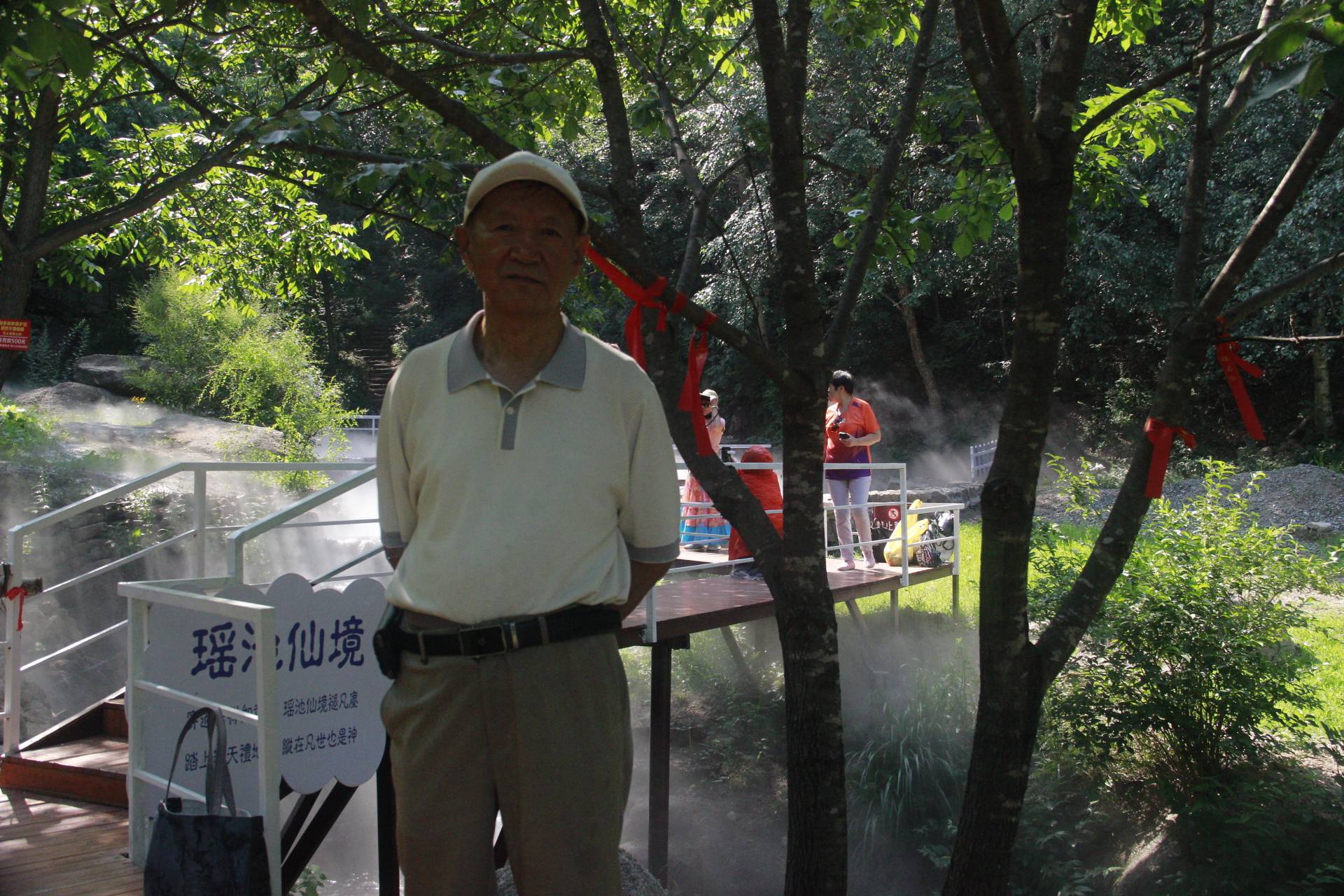 马上要进入“瑶池仙境”了。老研会会长陆晓明先生在这里等候大家。人称他为“燕山陆老”;他是“奇石谷”的创始人,也是这次活动的组织者,当然了,免费导游由他担任是最有资格的了!