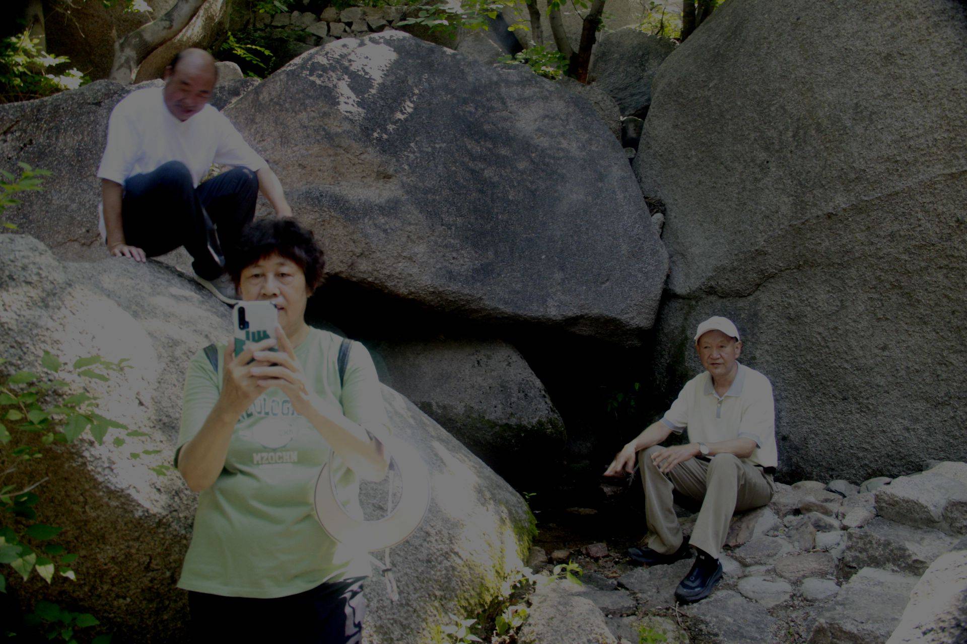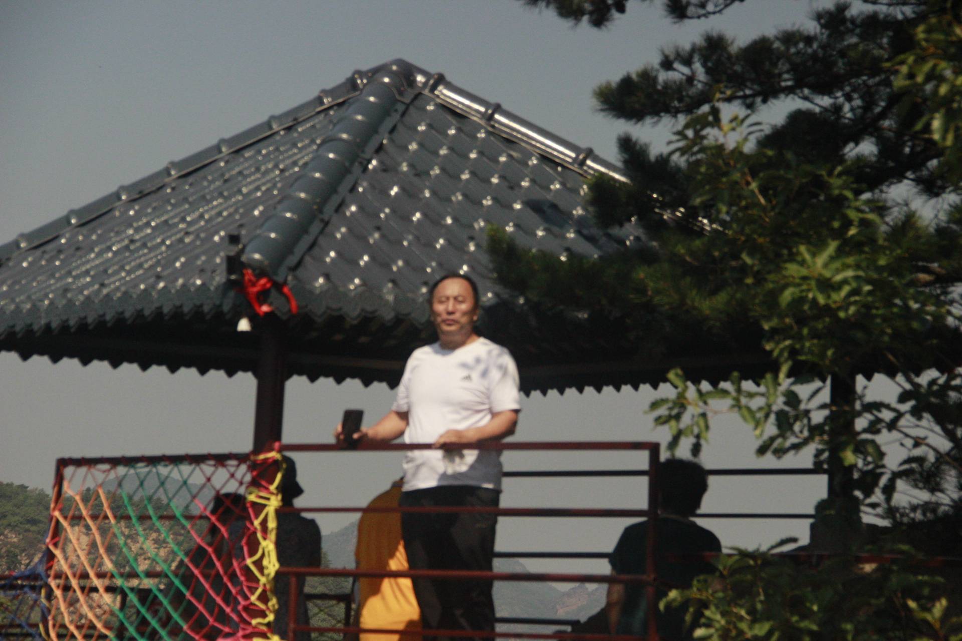 我们坐下休息片刻,准备迎接更大的挑战——登北峰。三位会长:老研会会长陆晓明,义务解说员;老研会常务副会长李俊海,是个才子乐天派;老年诗词协会会长张学玲(女),填词高手美术家。