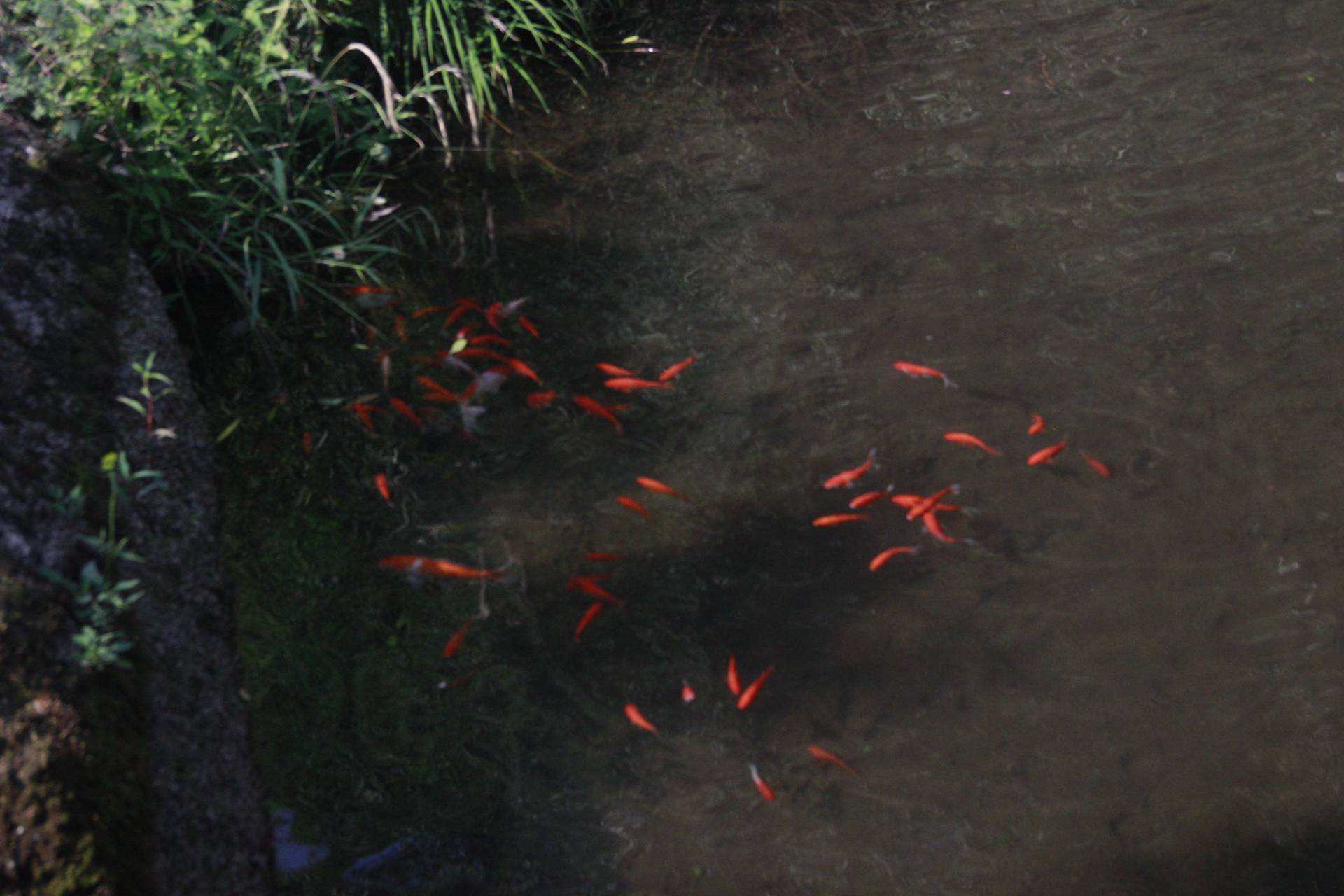 水帘洞水流潺潺,叮咚悦耳,静影沉璧,锦鳞游泳。
