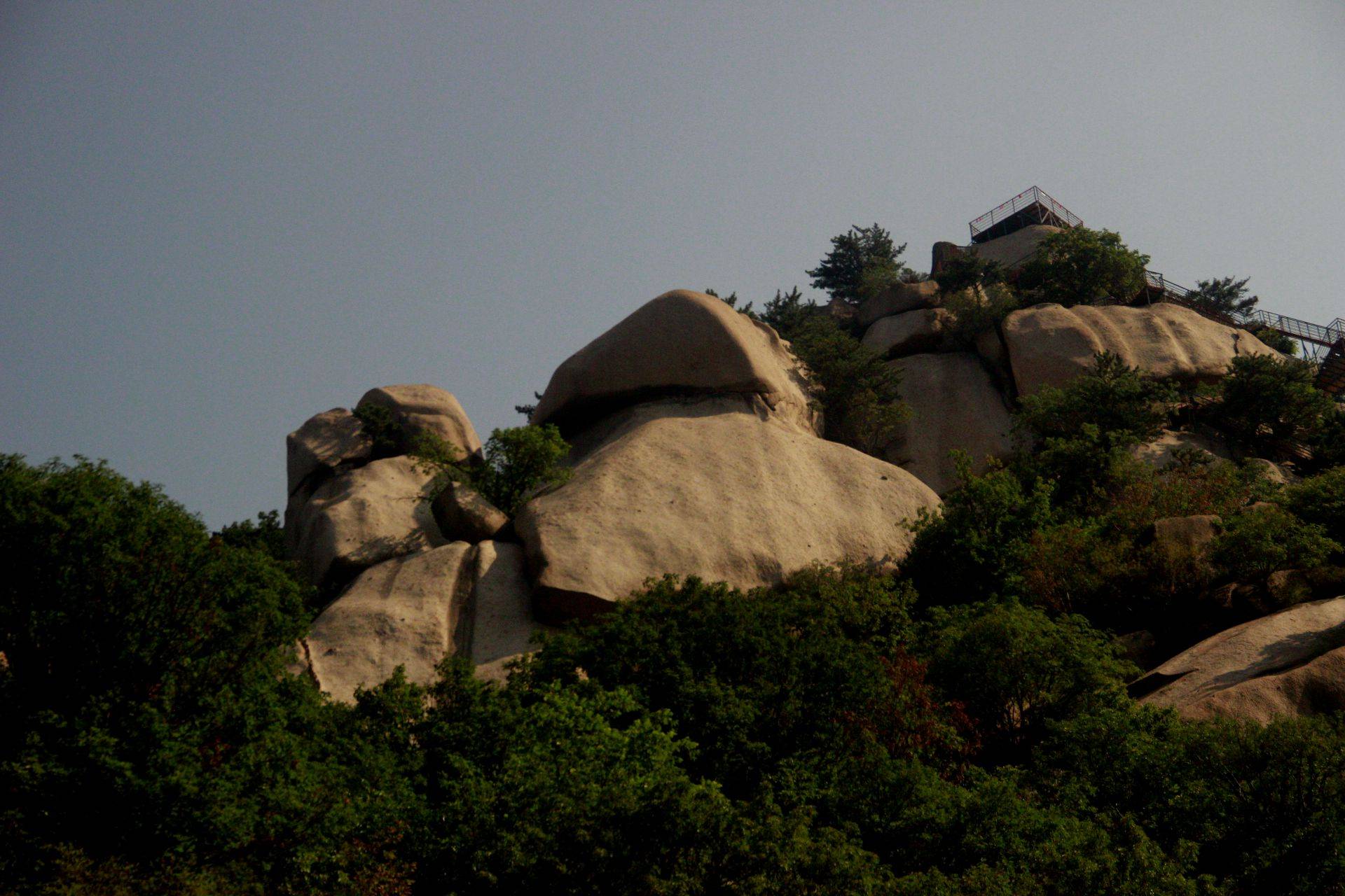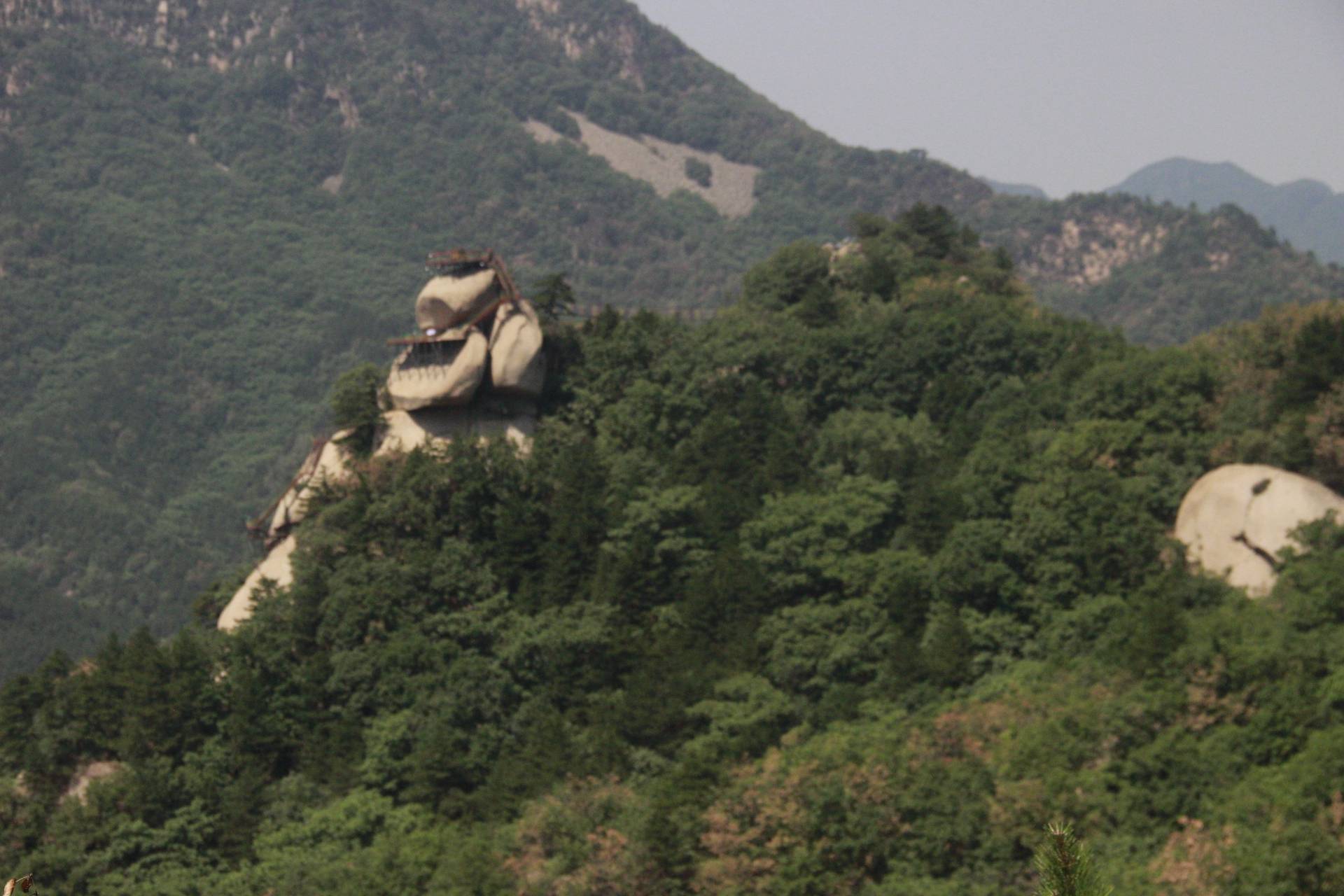 这是从远方拍摄的这里的景象,你说,惊险不?最上面那块巨石,就是“敬天石”,那尊敬天鼎 就在那上面。再问一遍,惊险不?