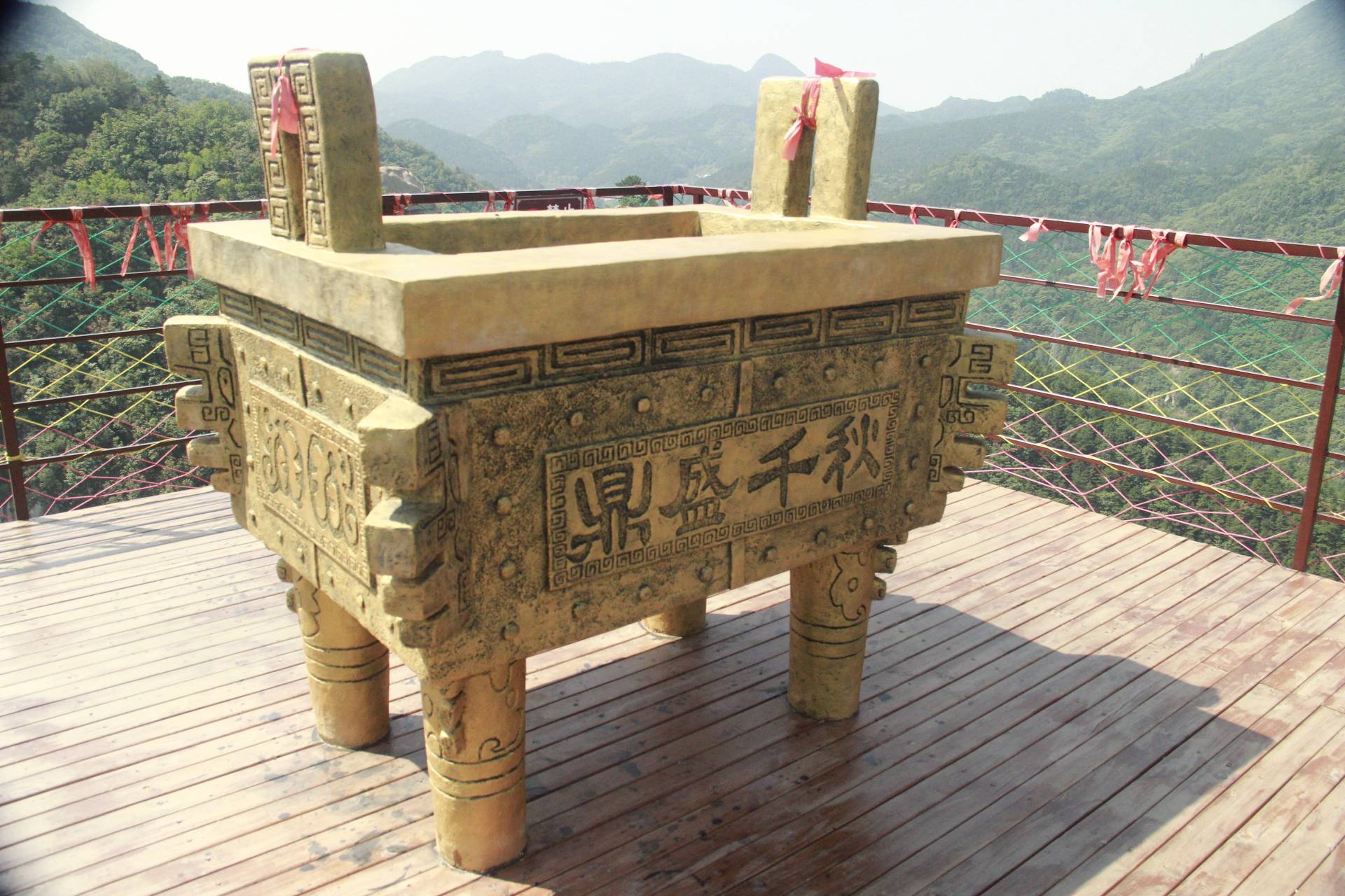 巨石上,安放着一座祭天鼎,上书“鼎盛千秋”四个大字。象征意义不言而喻。