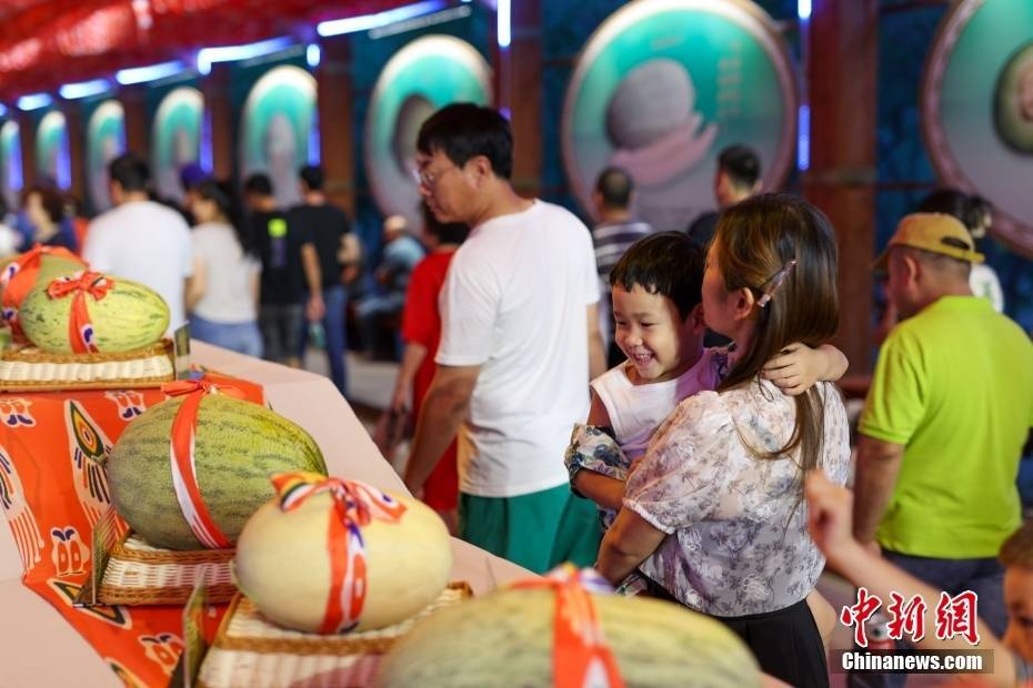 小朋友观看哈密瓜展示。中新社记者 贾天勇 摄