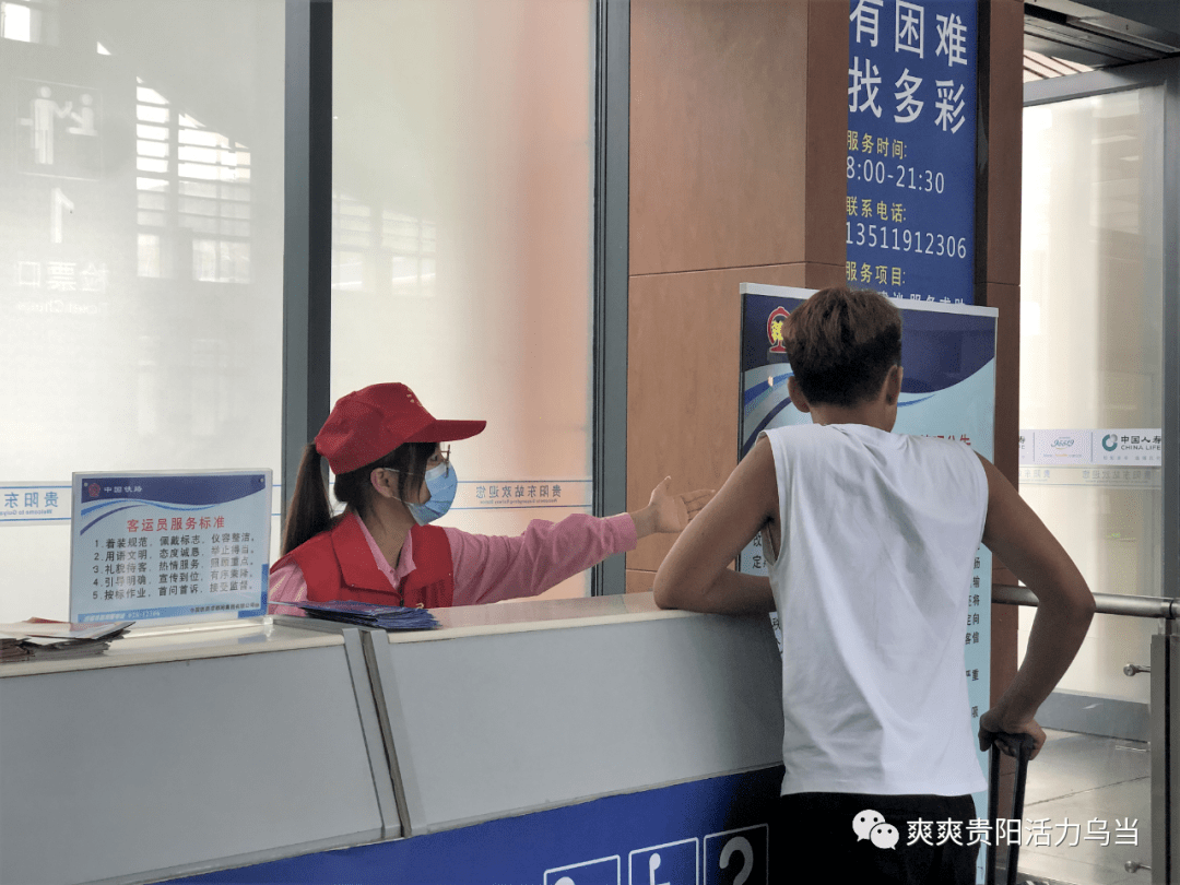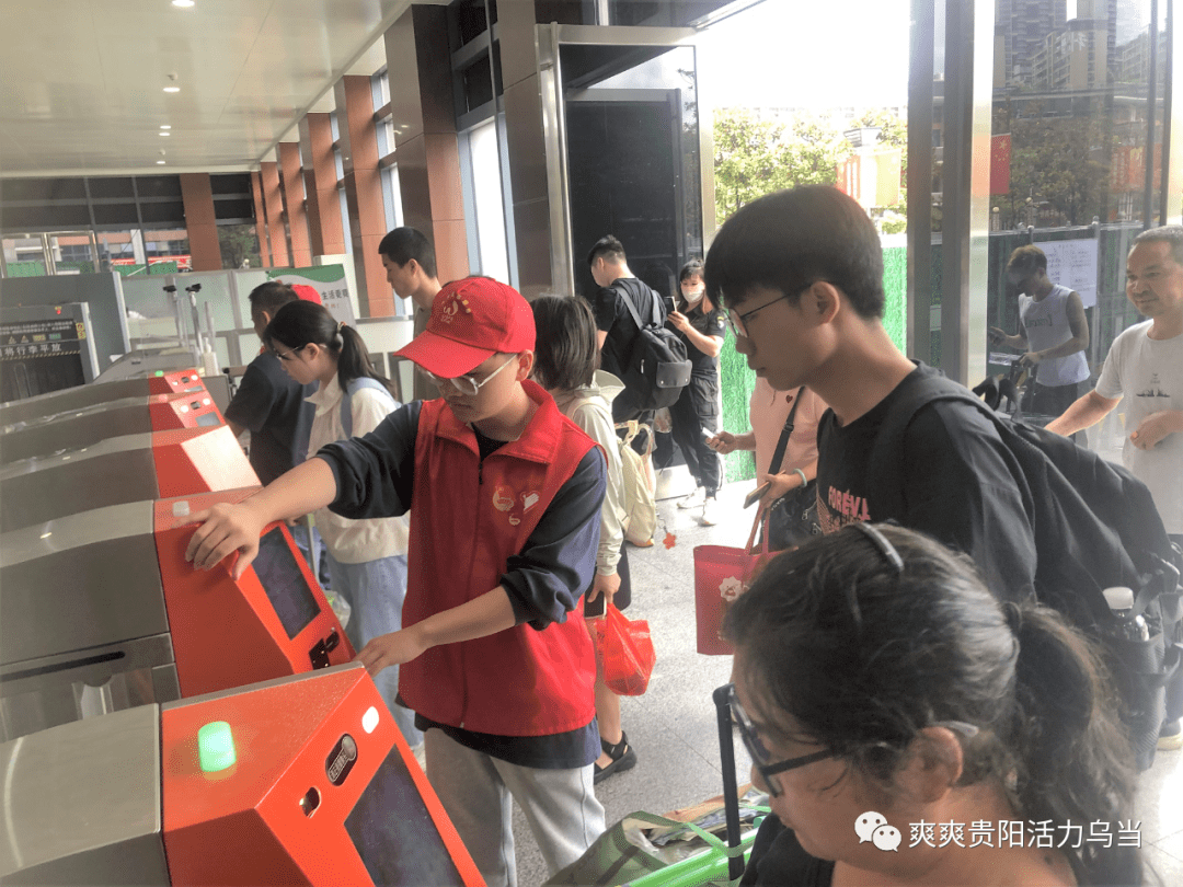 记者在贵阳东站出站口看到,不断有旅客向志愿者打听哪里有好玩的、好吃的、如何乘车等,志愿者都悉心解答。