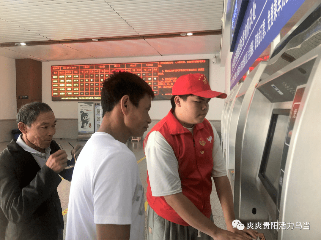 今天一早,来自贵州师范学院的大四学生杨辉就和同学前往贵阳东站,穿戴好文明旅行志愿者马甲和帽子,在进站口、候车大厅、售票厅和出站口,开展文明旅行志愿者服务。