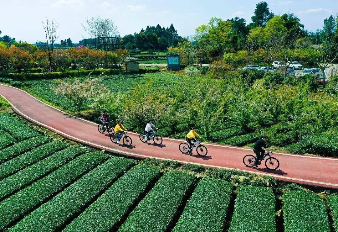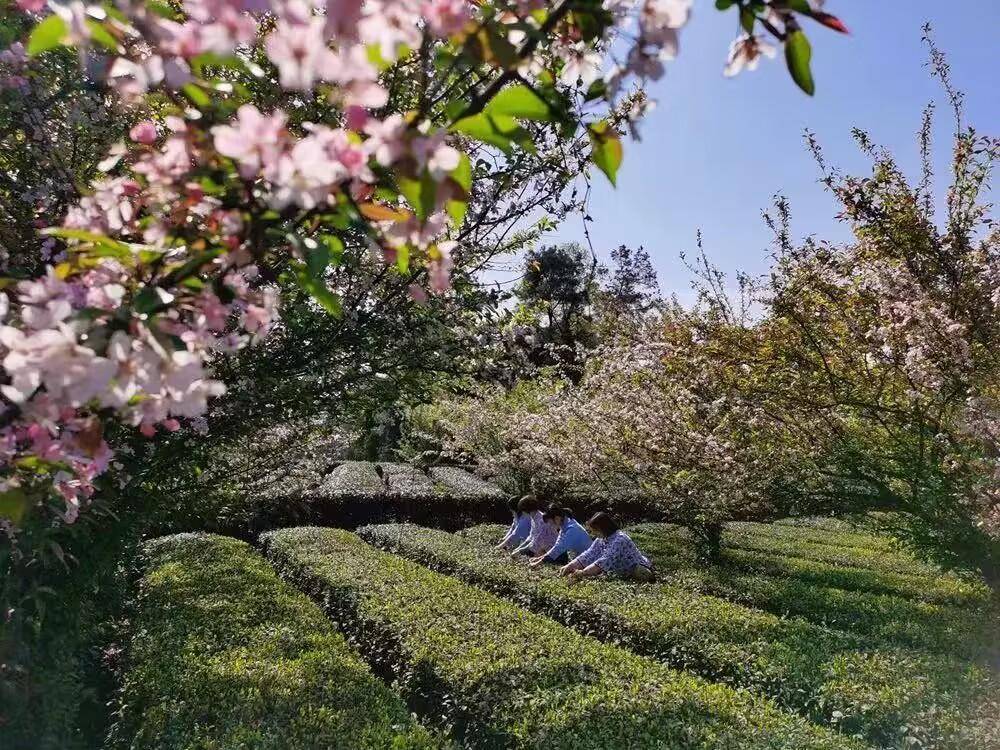 蒲江的春天,是20℃的艳阳天,微风轻抚过淡红色的海棠,抬头就能望见翠绿的茶陇,在如画的绿道漫游,是数不清的茶田 ,是看不完的海棠花。