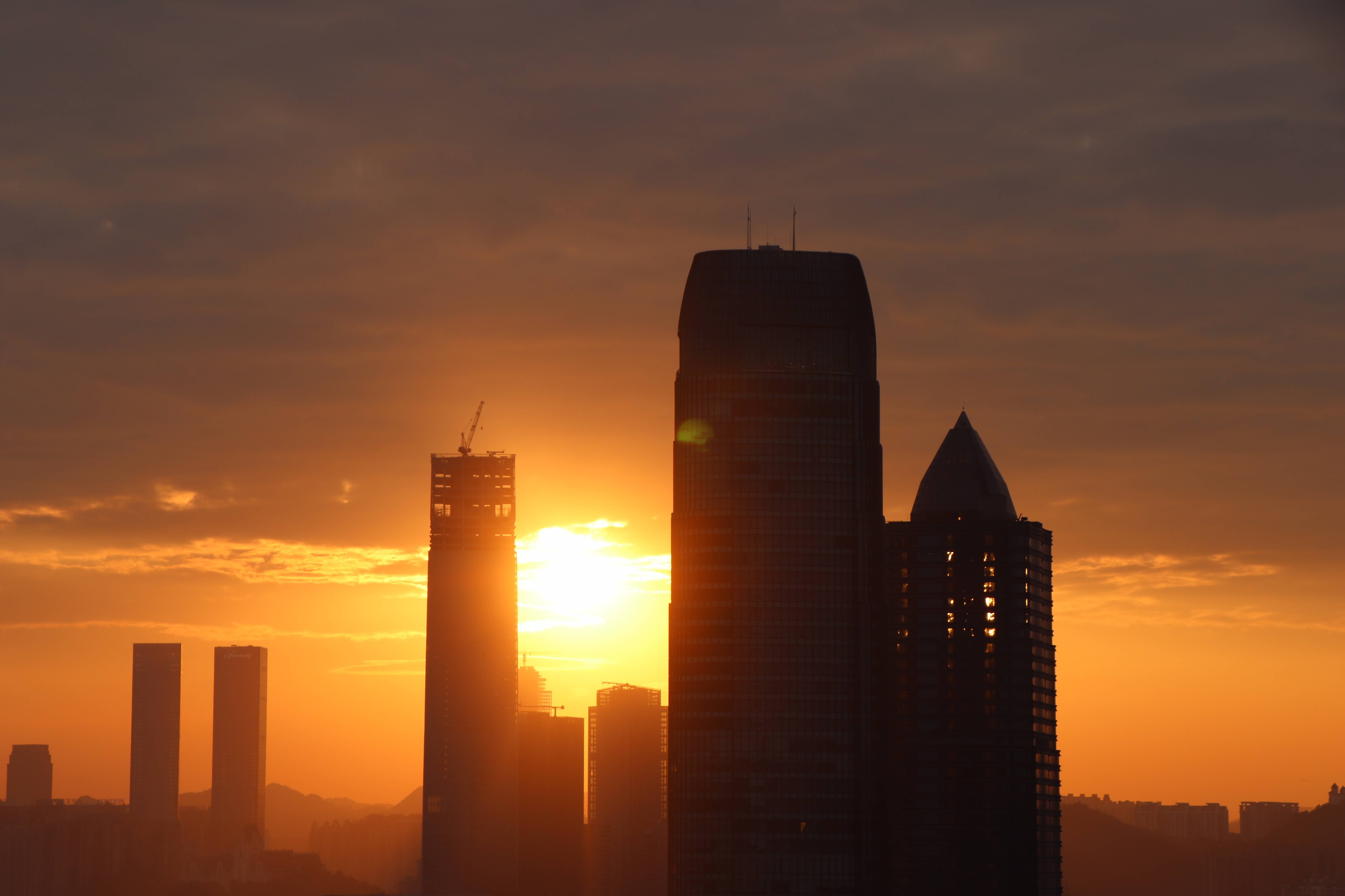 登上山顶,便能俯瞰贵阳老城全景。天气晴好时,这里的日落是一道动人心弦的风景线,吸引着不少游客来此。落日余晖洒在错落有致的建筑上,影影绰绰、朦朦胧胧,高楼林立的城市温暖如画。