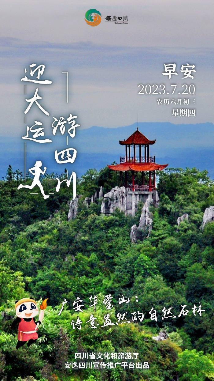 今天安逸四川日历海报“迎大运·游四川”走进华蓥山,看诗意盎然的自然石林。