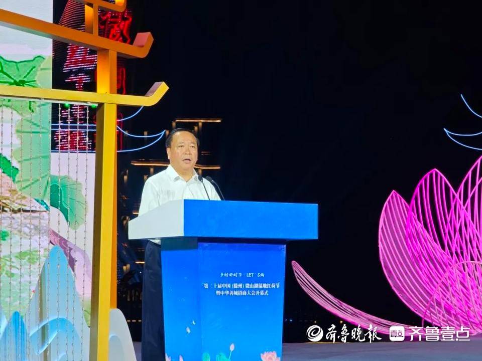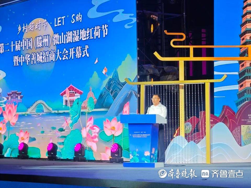 开幕式上,枣庄市委常委、滕州市委书记王广部作了主题推介。他说,滕州是一座底蕴深厚的历史文化名城,拥有厚重的历史人文积淀、丰富的山水资源禀赋、优良的尊师重教传统,成为善文化的发源地,期待与您共品古滕善韵。滕州是一座潜力无限的创新创业宝地,这里交通便利、物流天下,资源富集、机遇叠加,崇尚创新、鼓励创造,期待与您共享发展机遇。滕州是一座动能澎湃的现代工业强市,致力于构建更宽赛道的现代产业体系、培育更具竞争力的骨干龙头企业、搭建更高能级的园区平台,期待与您共谱转型新篇。滕州是一座重商亲商的投资兴业热土,坚持把善文化作为营商环境的特色地域文化来塑造,以高效服务赢得企业满意,以真帮实促坚定企业信心,以诚信法治护航企业发展。美丽的滕州将以荷为媒、以善为缘,盛情邀请大家了解滕州、选择滕州、投资滕州,与大家共创美好未来、谱写精彩华章。