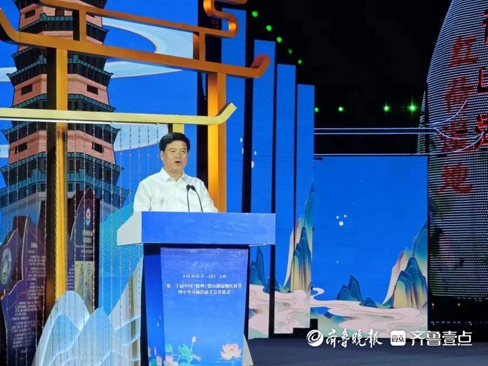 山东省文化和旅游厅一级巡视员张明池在开幕式上讲话,并宣布开幕。他说,近年来,滕州市大力发展文旅产业,有力推动了文旅深度融合发展,特别是用20年的坚守和创新,打造了一张展示滕州对外形象的靓丽名片,为推动县域文旅产业发展作出了示范。当前,全省正在实施“文旅提质赋能计划”,希望滕州市以此为引领,把红荷节打造成为深化文旅融合、助力招商引资、撬动产业发展的重要引擎,持续做好“文旅+”文章,推进更多大项目、好项目落地滕州,形成文化旅游与多行业、多领域融合发展的新局面,以经济社会高质量发展新成效,为新时代社会主义现代化强省建设贡献滕州力量。