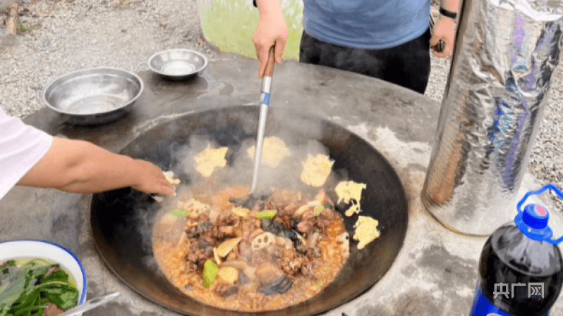 游客在土灶上烧柴火鸡(央广网发 肖雨摄)