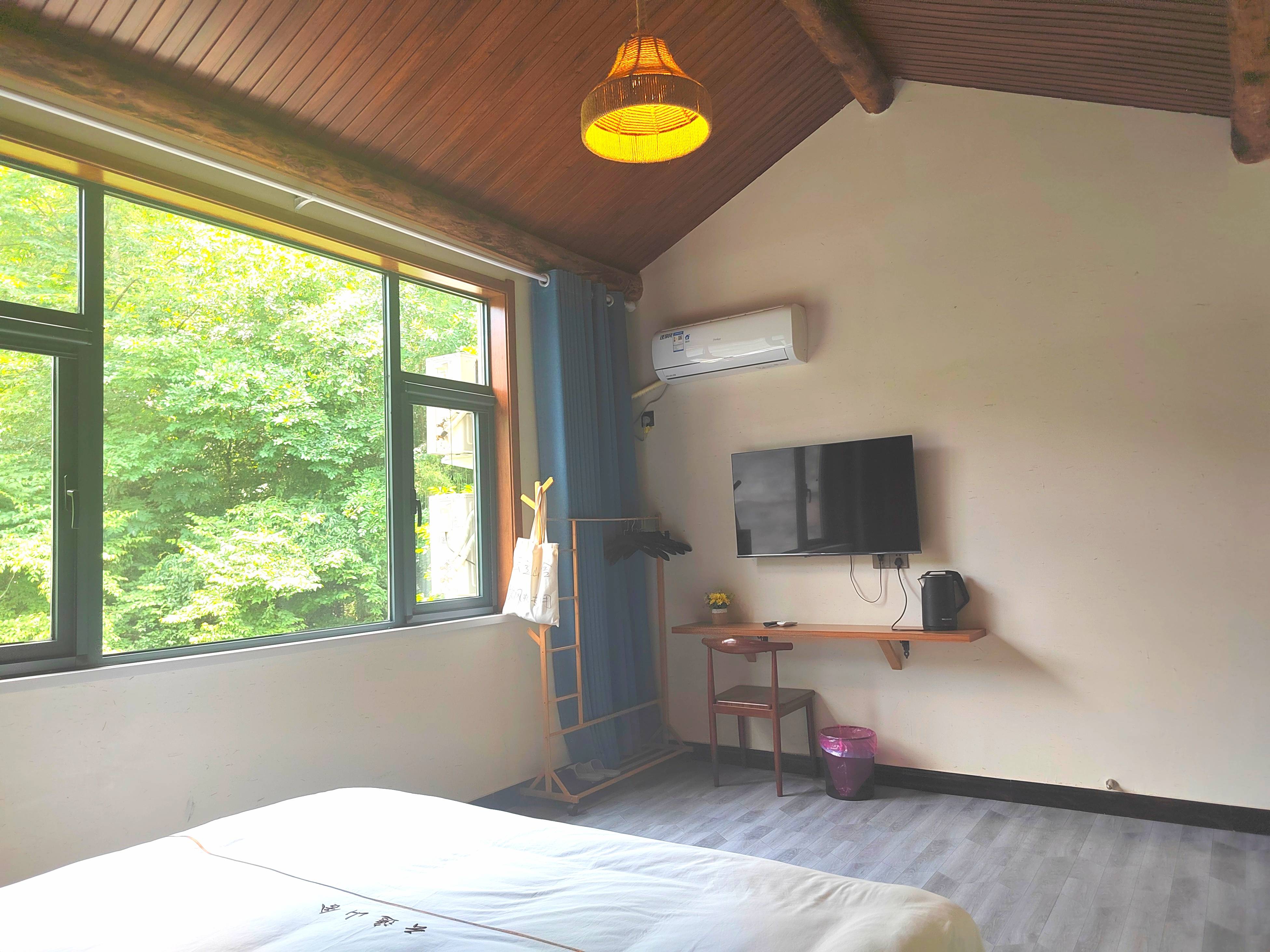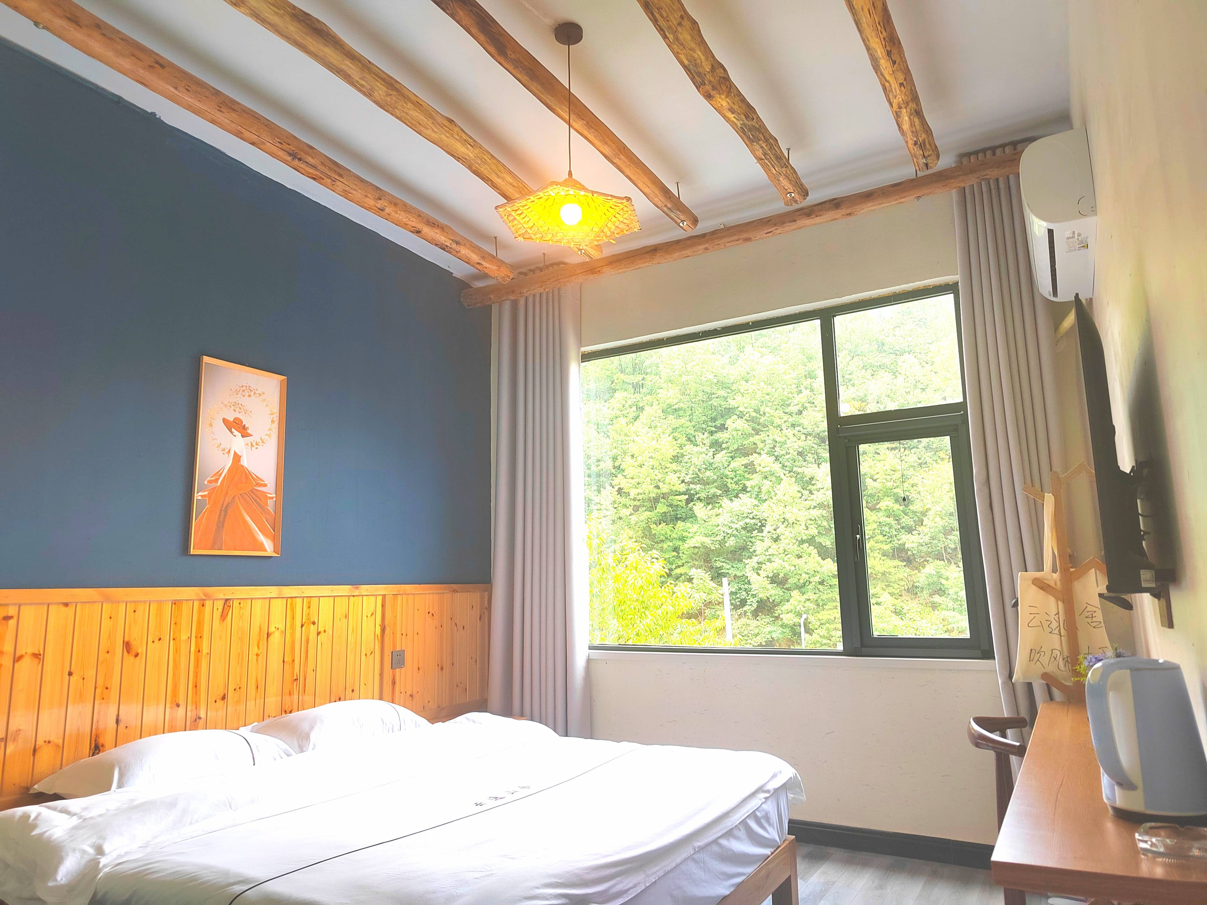 一家人出来游玩,以前住的都是酒店,在网上不经意间看到这家云逸山舍精品民宿,看环境和风格都不错,原木复古风院子也特好看,就抱着试试的心态去看看,到点之后确实不错,仿古式的庭院,门前还有一大片竹林,竹林旁边就是小溪,全实木的就餐桌椅,开放式的就餐环境,非常适合休闲度假,晚上坐在外边,阵阵凉风送到身边,能让你感觉到秋天的凉爽,喝着啤酒,听着歌,人生难得须尽欢,惬意极了,悠闲的样子,比住酒店舒服多了,房间也很温馨,特别是2米宽的大床,可以让孩子们任意翻滚,尤其是店小哥送的山泉水,冲茶太好了,而且热水也比较充足,在这里询问什么,店小哥都会微笑着给你耐心的解答,尤其那房间的卫生,打扫的真叫干净整洁,以后再过来旅游,必选之处,如果不是太忙的话,真想带孩子们在这里多待几天,我精心拍的图片,自我感觉拍照技术不错,供大家参考!