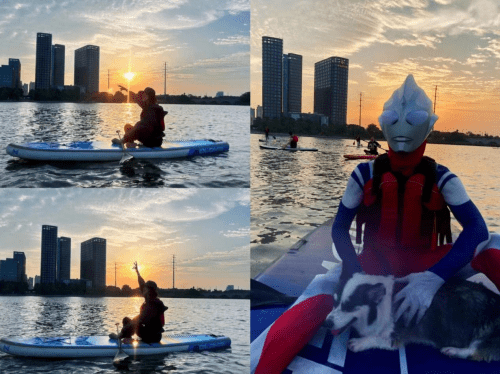 “后来尝试躺在桨板上,好惬意望向天空安静的躺着,水波温柔的荡漾夕阳温柔的照耀这一刻好舒服,大脑也是放空的,奥特曼是一位社牛盆友,他为了出现在我们每个人镜头里,为我们打造了最美的瞬间,总之这项运动是一次蛮愉悦的体验,想尝试的集美们大胆去尝试!”
