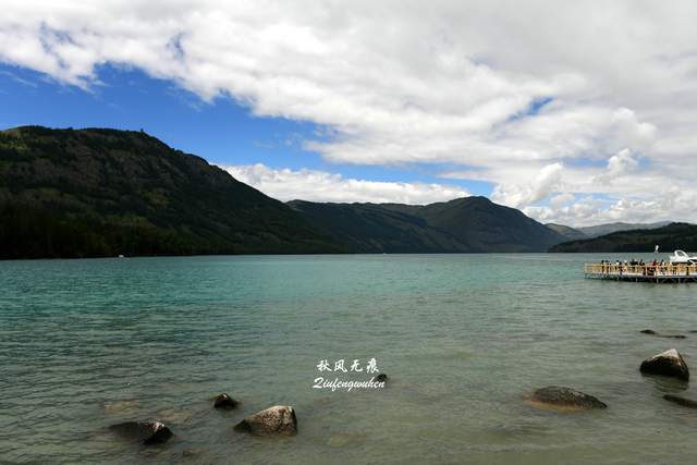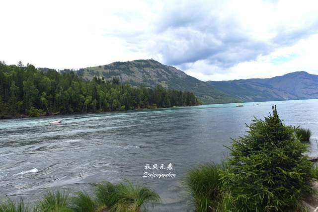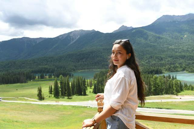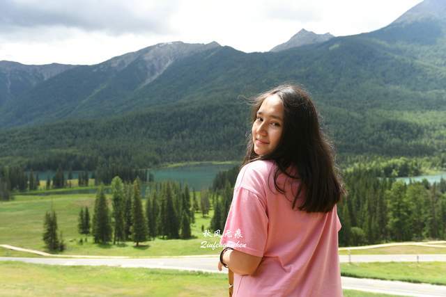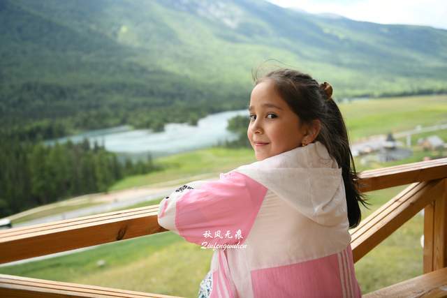 在核心景区,坐上返程的摆渡车,月亮湾、卧龙湾、神仙湾......一个个观景点的停留,一个个湖景水色,让走近领略了喀纳斯美轮美奂的水韵风景。月亮湾俯瞰,山谷的碧玉水流在白桦林、草地间蜿蜒通过,阳光与云朵的变幻下的风景,明暗嬗变成就一幅幅水的美妙。观景台上遇到新疆小女孩,在我镜头里留下新疆快乐的笑脸,其中一个女孩居然在后来返回西安后的微信消息里得知,在秦岭山下的西安建筑科技大学读书,也算旅游里喀纳斯与西安的一次缘。