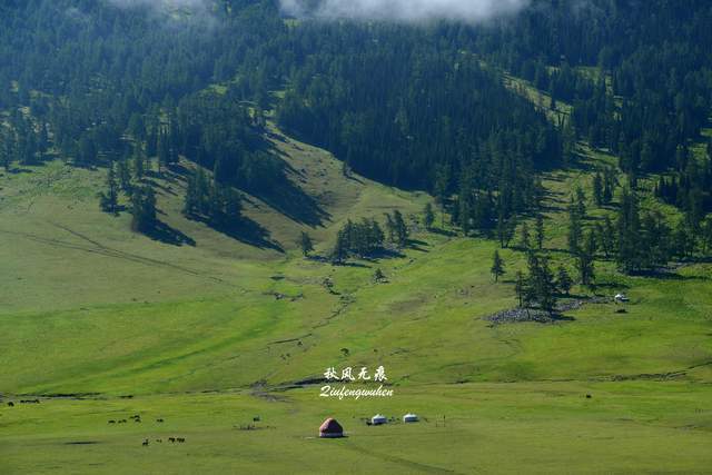 2022年七月初,西行两万五千里第十二天清晨,从布尔津踏上去喀纳斯的行程,布尔津附近的湿地和沿途的湖景伴随晨光里的旅程。临近喀纳斯的贾登峪草原,用晨雾里梦幻,拉开喀纳斯行的帷幕,草原上云海飘渺,哈萨克牧人的白色毡房与牧场,留下北疆草原的记忆。