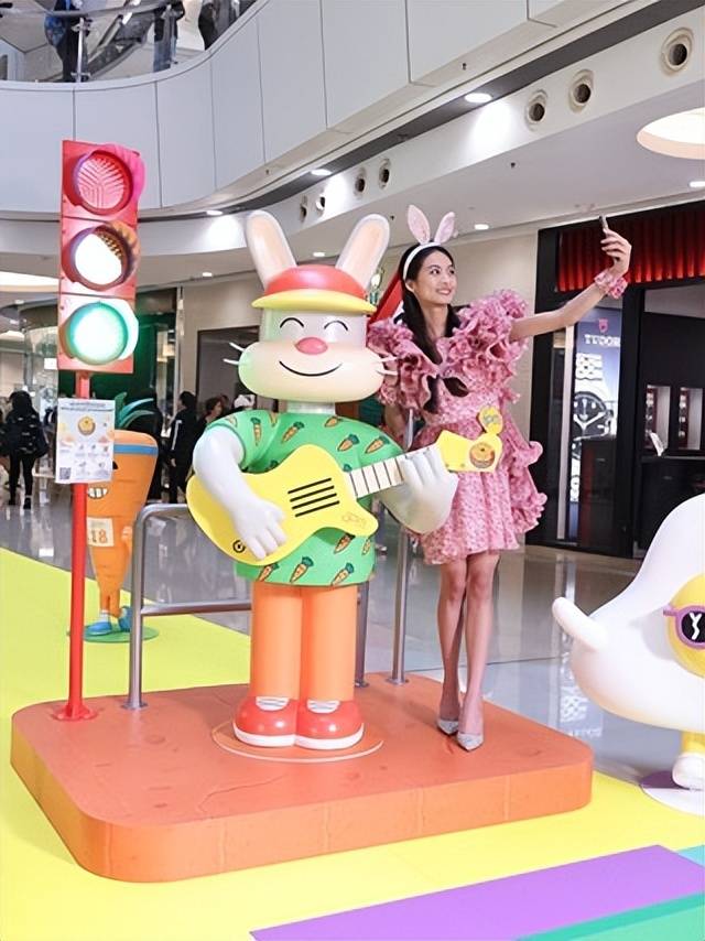 不仅有兔子角色,更是带来了一整条「玩味艺术大道」,把runway变身funway,有巨型复活兔,也有太阳蛋和胡萝卜等角色,还可以玩AR互动。