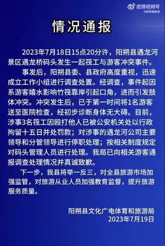 事情一出,涉事的三个筏工已被行政拘留加罚款。