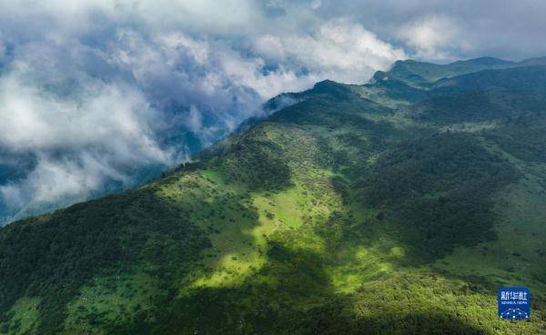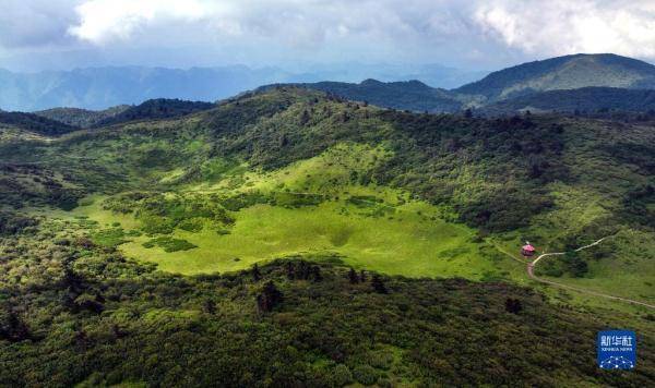 这是7月19日在陕西省汉中市留坝县拍摄的紫柏山景区草甸景色(无人机照片)。