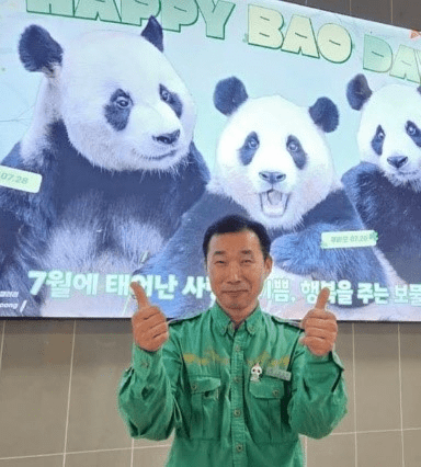 由于旅韩熊猫“宝家族”的生日均在7月,韩国粉丝为表祝贺,集资将乐宝、爱宝、福宝等形象投放在一地铁站的广告屏上。爱宝乐园熊猫饲养员姜爷爷还特意前来合影留念,并表达感谢。