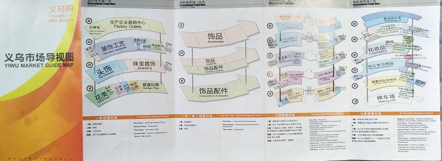 我们特地选择离商场较近的宾馆住下,总台服务员知道我们的来意后,给了一份《义乌市场导视图》,从图中可以了解商城的大概。
