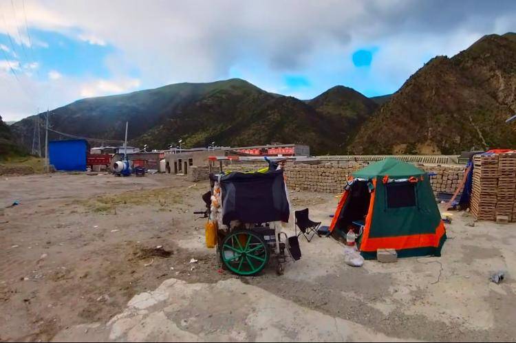 从云南香格里拉出发,行李不多,交通工具则是一辆改造过的轮椅。“没做什么详细的规划,带上充电宝、帐篷等装备,还有一只小狗就出来了。”地生回忆,其实第一次出发时并不顺利,受到疫情等各种因素影响,不得已半途而废。“今年4月3日,我们又从拉萨继续出发。”